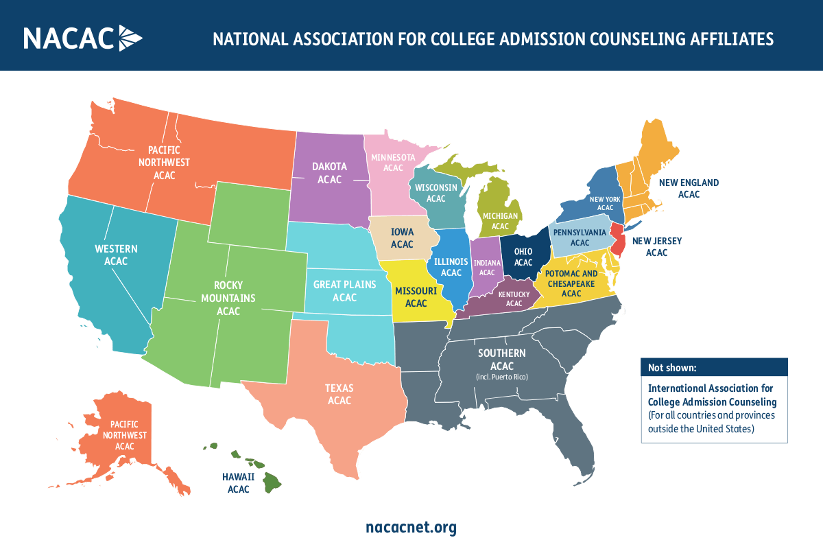 NACAC and its 23 affiliate organizations share a common mission to serve and support the needs of the admission counseling professionals and the students they serve. NACAC and the affiliate organizations work together to broaden geographic representations through partnership programs, activities and operations.